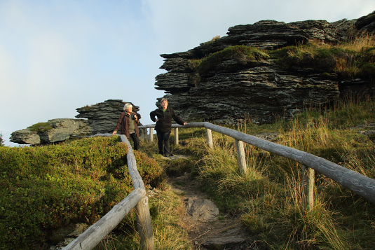 Ve čtvrtek ráno, poslední den pobytu pod Vozkou se probouzíme do vydatného deště. Dlouho trvalo, než déšť ustal, po dešti se hor zmocnila tolik Jiřím vytoužená mlha. Byl celý nesvůj, že už nejsme na cestě do míst včerejšího, jeho objevu. Chápu jeho nedočkavost, znám to také. Při výšlapu, na který jsem se vydal s Jirkou a Milenou, Janička zůstala na chatě, slunce začalo mlhu z hor vyhánět. Cestou se nám podařilo několik fotek pralesa ještě s mlhovou náladou, ale na samém konci již sluníčko ovládalo všechny nabízené scény. Ostré světlo sebralo fotkám úžasný nádech zapomenutých, horských končin. Jiří lamentoval, chtělo to vyjít dříve, ale jak? Však pršelo a vítr byl nepříjemný. Přesto se, aspoň já vracím moc spokojený. Díky Jirkovi jsem mohl poznat další tajemná místa kolem skalnatého monumentu Vozky. Několik fotek, aspoň dokumentačních si přesto odnáším. Výšlapu před odjezdem vůbec nelituji. Naopak, jsem šťastný, že mne Jiří do těchto tajemných lokalit dovedl.